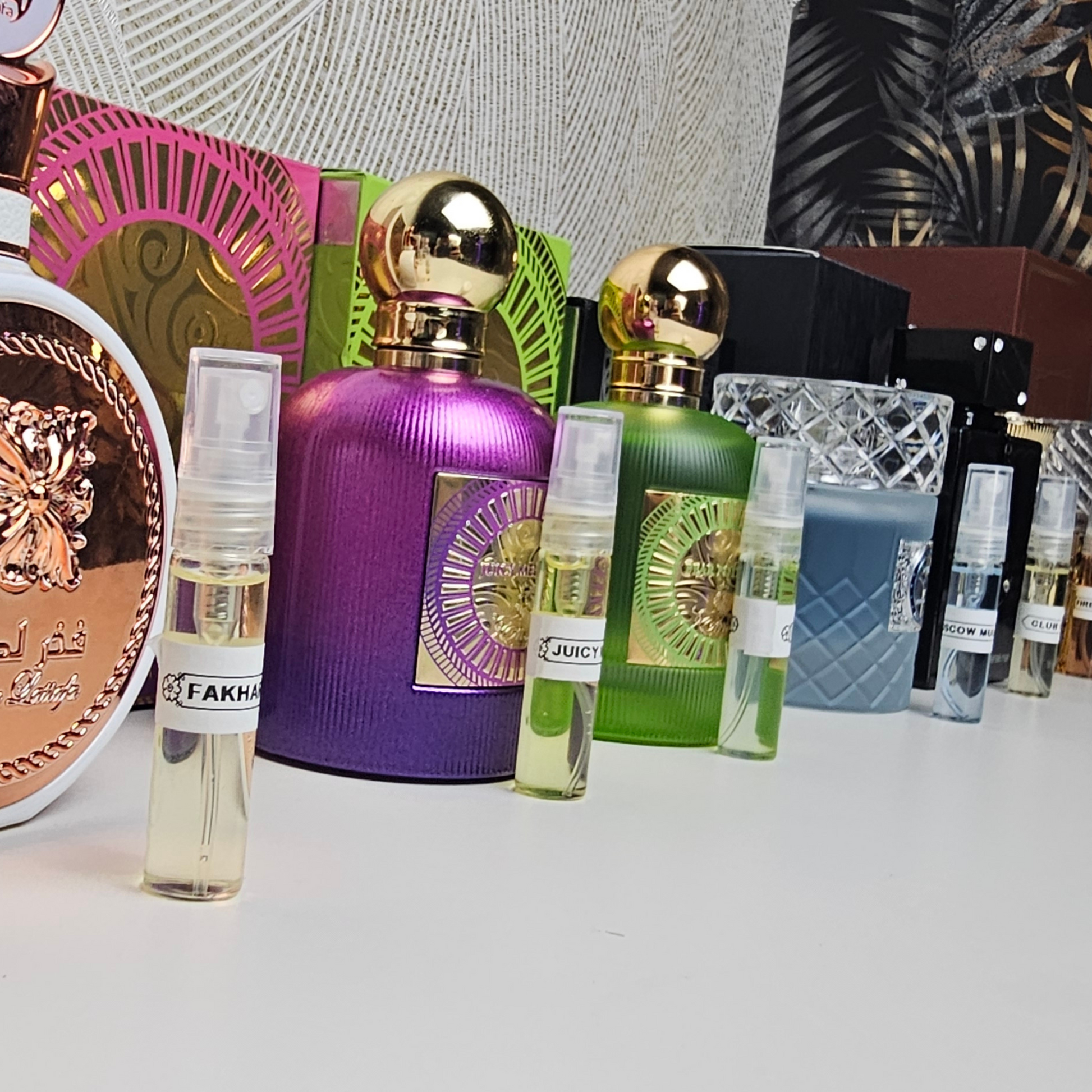 Descubre el arte de la perfumería árabe con este exclusivo pack de 5 muestras de 10 ml cada una. Perfecto para quienes desean explorar y disfrutar de las fragancias más exóticas antes de elegir su favorita.